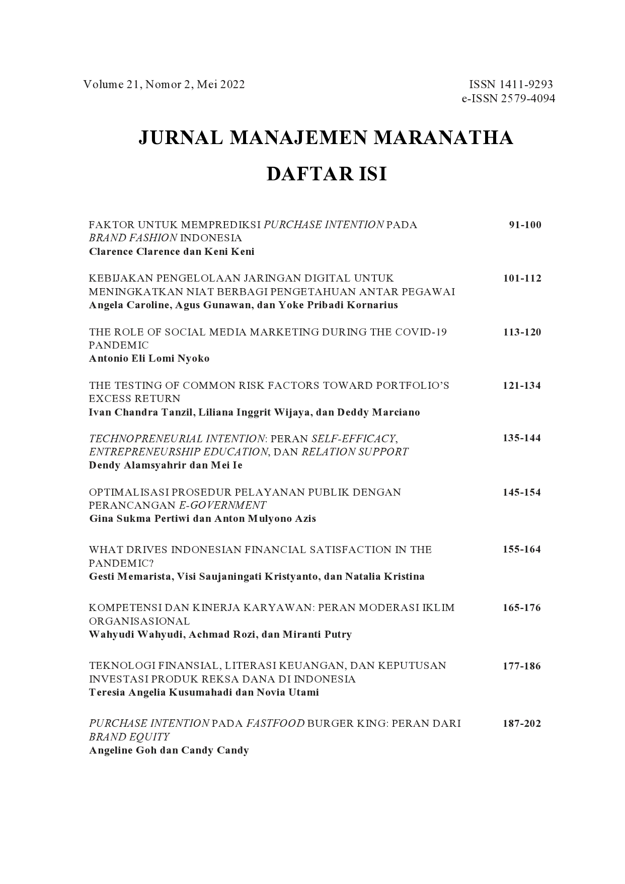 ida, I. (2022). Daftar Isi. Jurnal Manajemen Maranatha, 21(2). Retrieved from http://114.7.153.31/index.php/jmm/article/view/4853