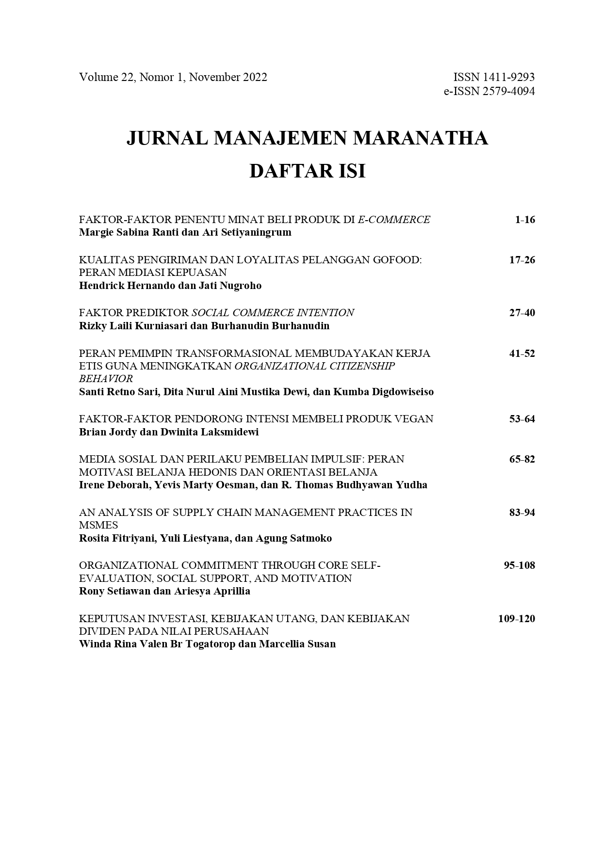 ida, ida. (2022). Table of contents. Jurnal Manajemen Maranatha, 22(1). Retrieved from http://114.7.153.31/index.php/jmm/article/view/5738