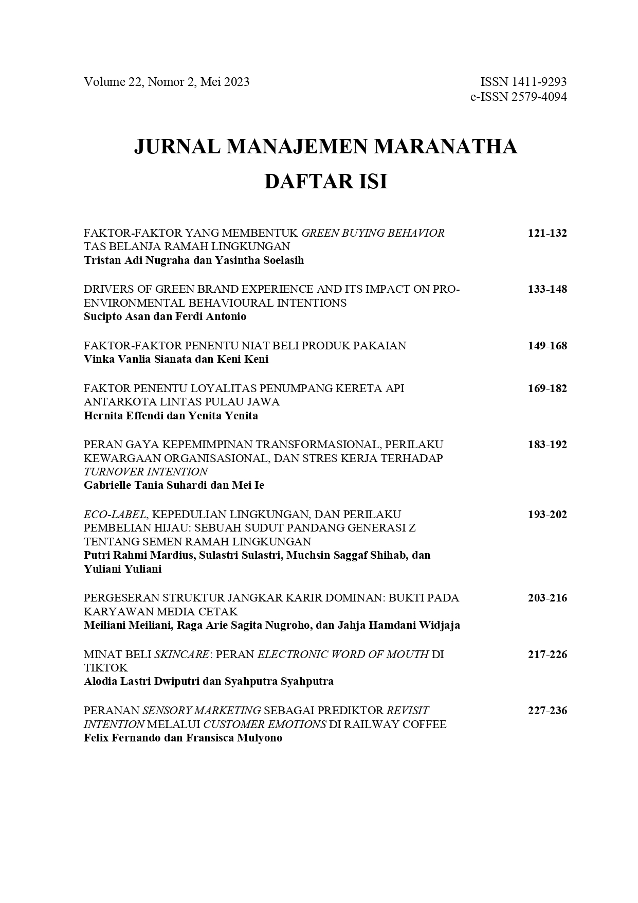 ida, I. (2023). Table of Contents. Jurnal Manajemen Maranatha, 22(2). https://doi.org/10.28932/jmm.v22i2.6577