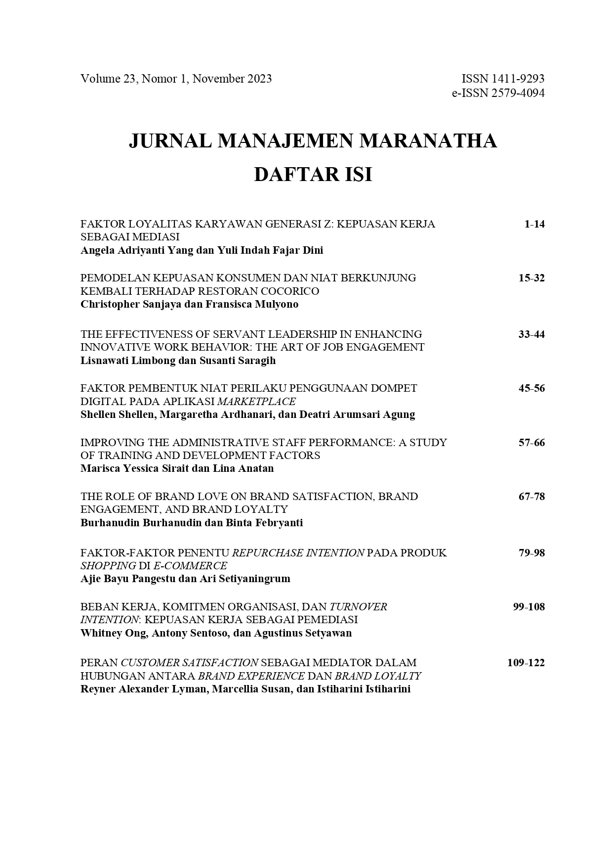 ida, ida. (2023). Table of Contents. Jurnal Manajemen Maranatha, 23(1). Retrieved from http://114.7.153.31/index.php/jmm/article/view/7799